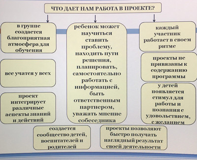 Именно проектная деятельность поможет связать процесс обучения и воспитания с реальными события из жизни ребенка, а также заинтересовать его, увлечь в эту деятельность. Она позволяет объединить педагогов, детей и родителей, научить работать в коллективе, сотрудничать, планировать свою работу.